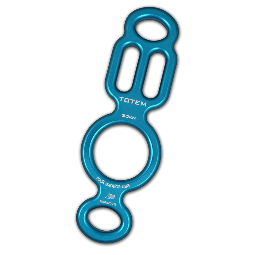 The Totem was designed to be the most versatile rigging and rappelling tool available. It can function as a rigging plate, an easy-to-lock-off figure 8, sticht plate, auto-blocking plaquette device, and many other configurations. Although designed originally for canyoneering, the Totem is a valuable tool for rock climbing, mountaineering, caving, rappelling and rescue. For more information, visit: